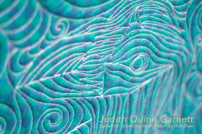 I feel so lucky that I have the chance to quilt for such talented clients.  This project was brought to me by one such super talented quilt artist, Judith Quinn Garnett.  She took a workshop from Ann Shaw and created this beauty.  I’m so impressed, because I also took one of Ann’s workshops – but my project is still “in progress” several months later.  Where I struggle with choosing the right fabrics, Judith excelled with her own version.  I was so happy when she asked me to quilt this for her!
