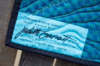 You can also see what a great artist she is when you see her quilt label.  I’ve tried my hand at handwriting my labels, but they don’t end up looking this great when they are done – every detail is just perfect on this quilt.  And with this inspiration, perhaps I’ll finish piecing my own Ann Shaw pattern so I can have my own version to enjoy!